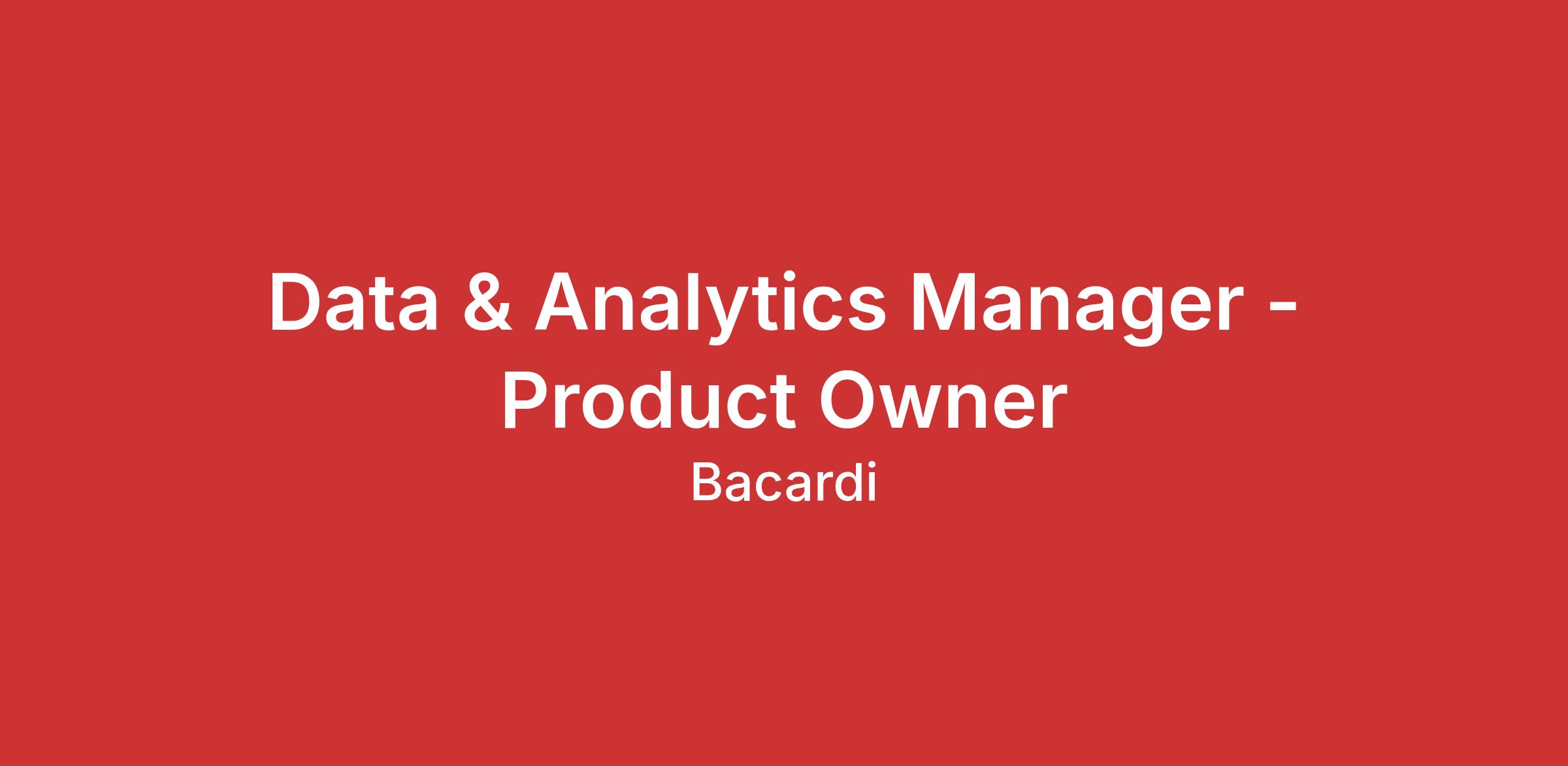 Your role is to support the region and/or functions in defining, designing and implementing analytics products in support of the overall Bacardi and data and analytics strategy.