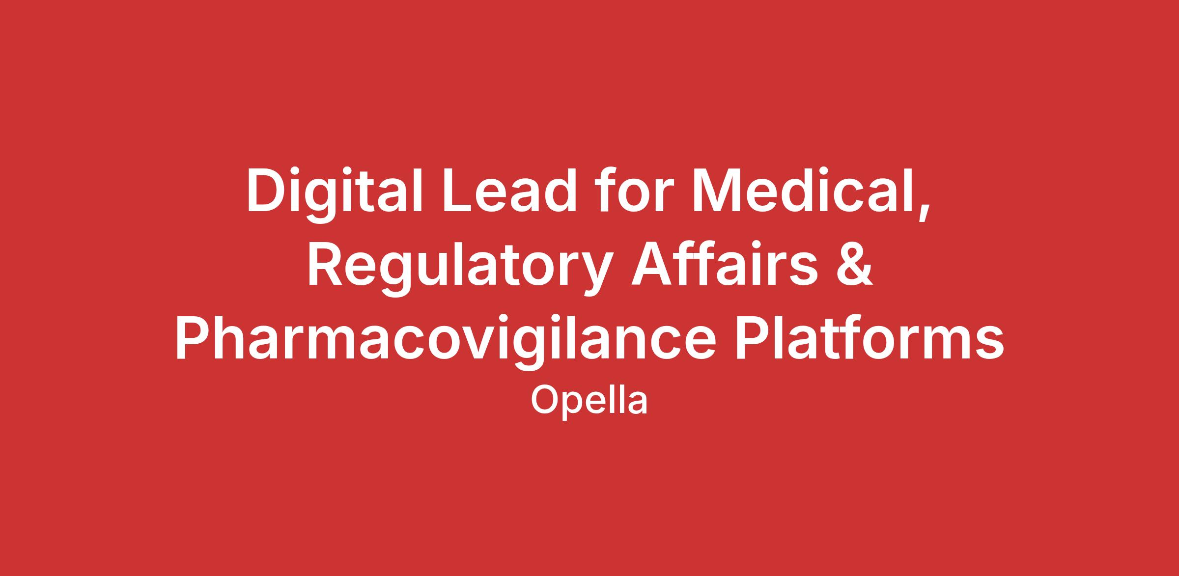 Digital Lead for Medical, Regulatory Affairs & Pharmacovigilance Platforms