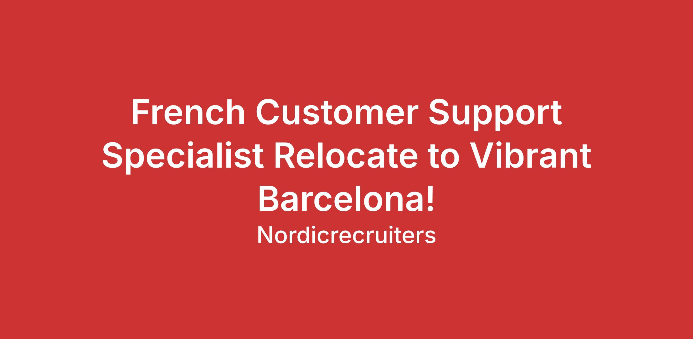 Are you ready to take your career abroad and live in one of Europes most exciting and cosmopolitan cities? Join our international team in Barcelona, Spain, and become part of a global company that values collaboration, growth, and cultural diversity. Were looking for French-speaking Customer Support Specialists who are passionate about helping people and eager to embrace the Mediterranean lifestyle while building a rewarding international career.