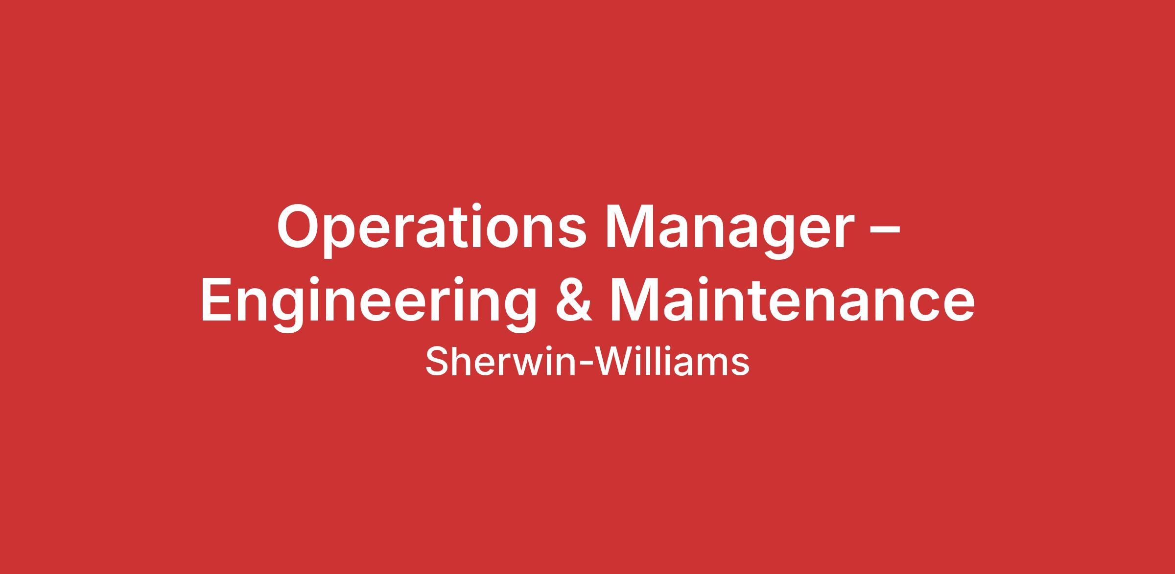 Operations Manager – Engineering & Maintenance