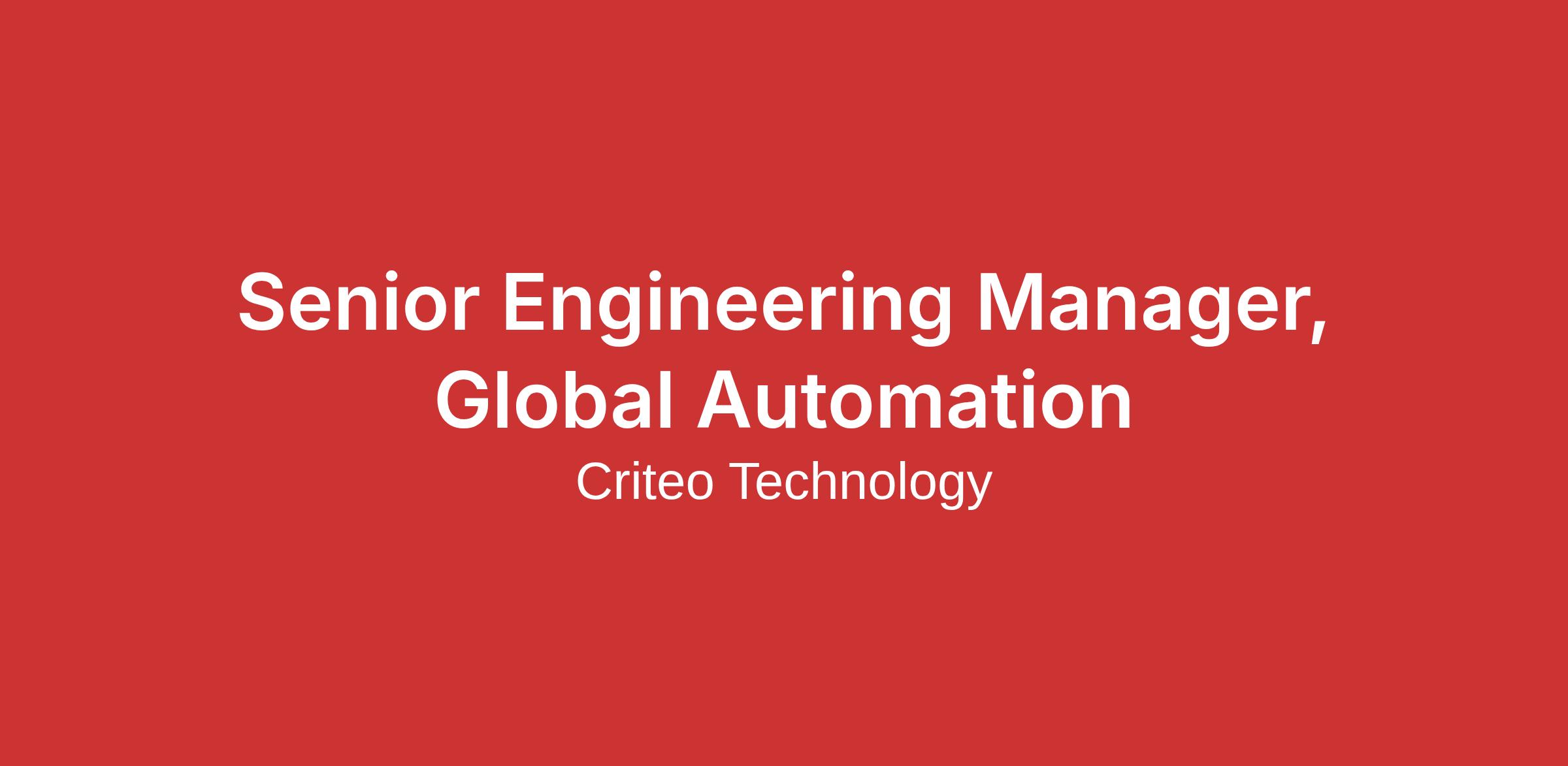 Senior Engineering Manager, Global Automation