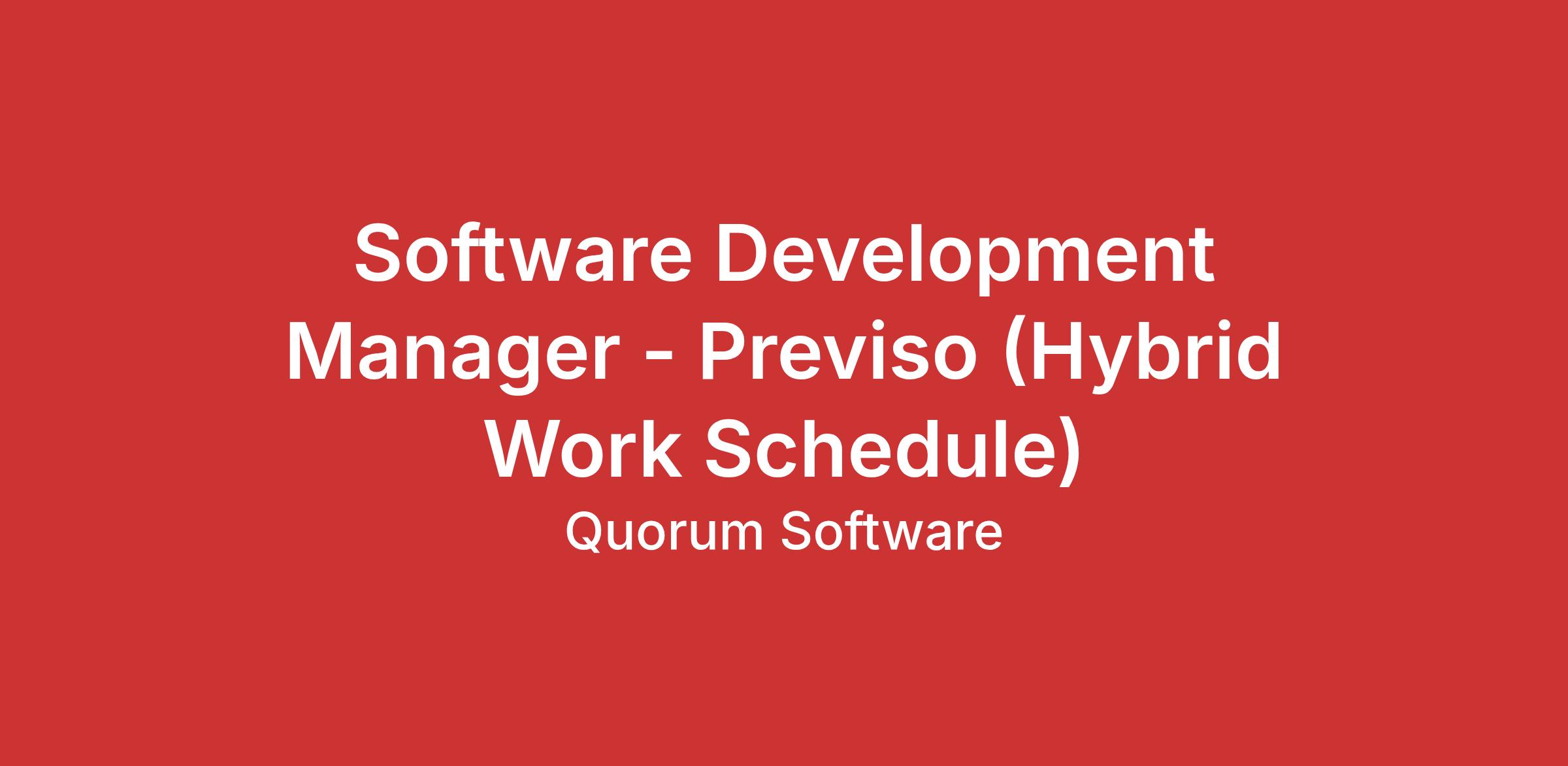 Software Development Manager - Previso (Hybrid Work Schedule)