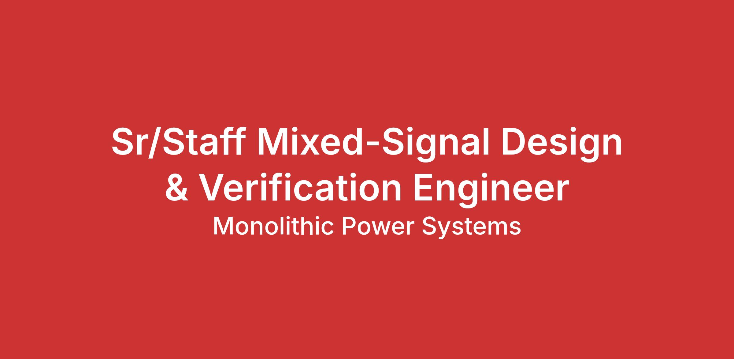 A Sr./Staff Mixed-Signal Design & Verification Engineer will lead the Mixed-Signal Design and Verification tasks, environment and developments of complex mixed-signal ICs utilizing leading edge technologies with industry standard ASIC tools. Products to be designed/verified may include power management, signal management and mixed signal functions.