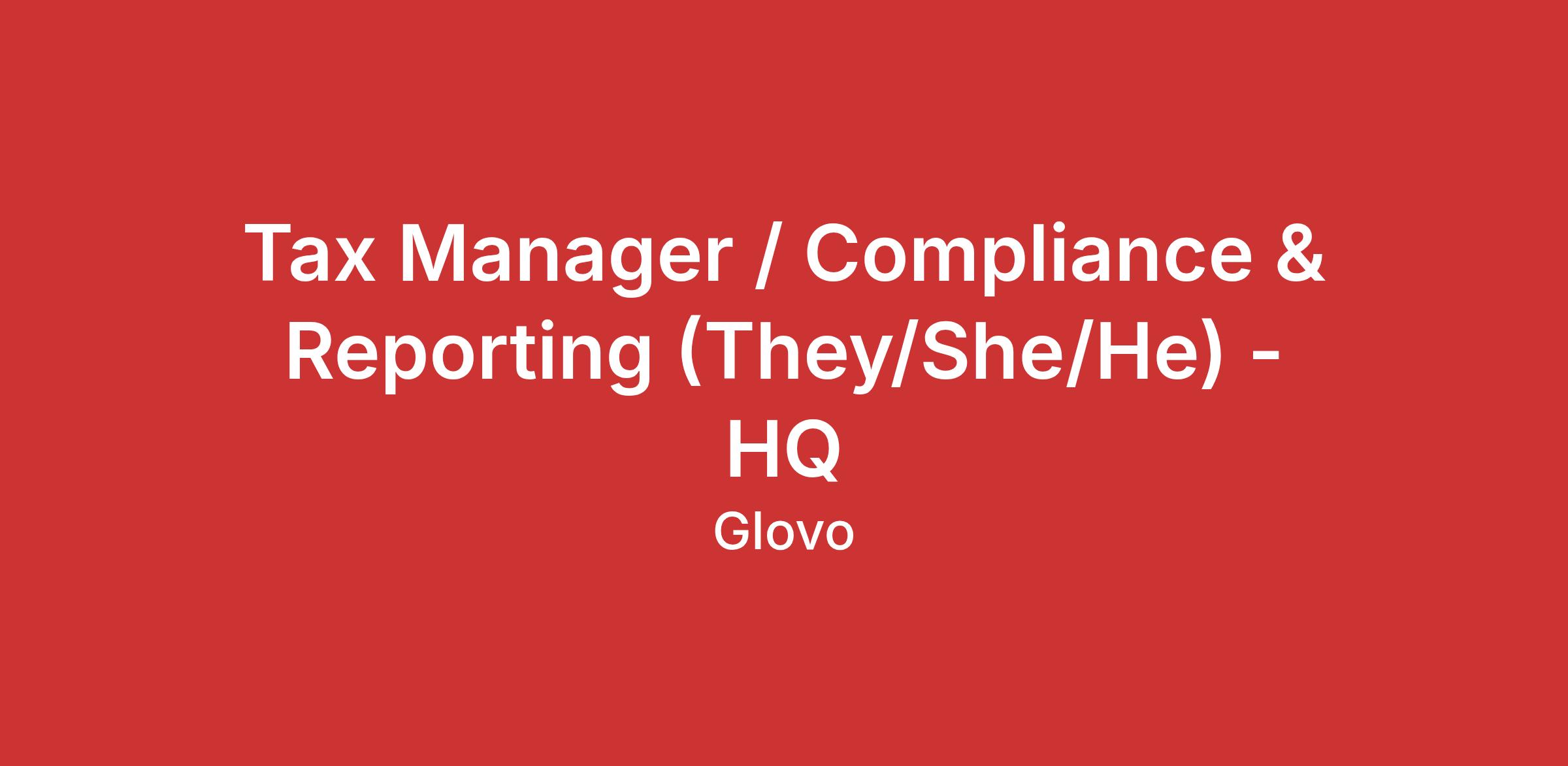 At Glovo we are looking for a Global Tax Compliance & Reporting Manager that will be playing a key role in the team and will be in charge of tax compliance matters of Glovo on a global basis.